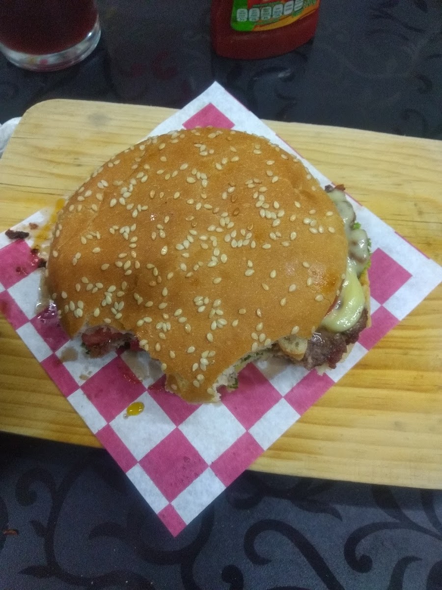 Es un buen lugar para ir acompañado, es tranquilo pese a estar al lado de la avenida, es agradable, en especial en la zona de terraza. Yo probé las hamburguesas y las malteadas, ambas son sabrosas, nada de otro mundo, pero vaya que volvería a comer ahí. El servicio es rápido y eficiente, y además cuentan con baño, qué por cierto, está muy lindo y limpio.